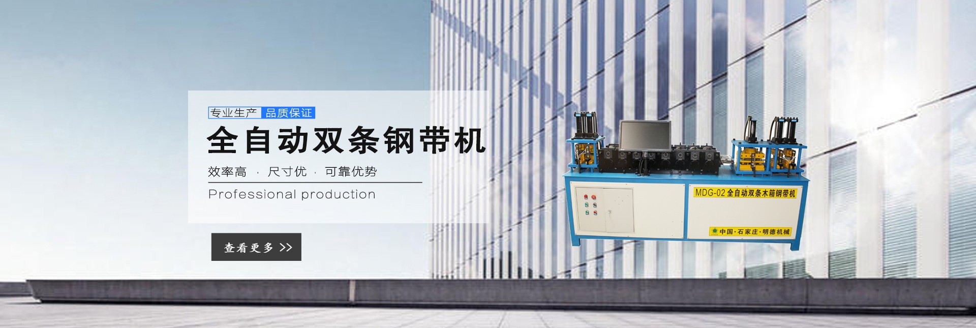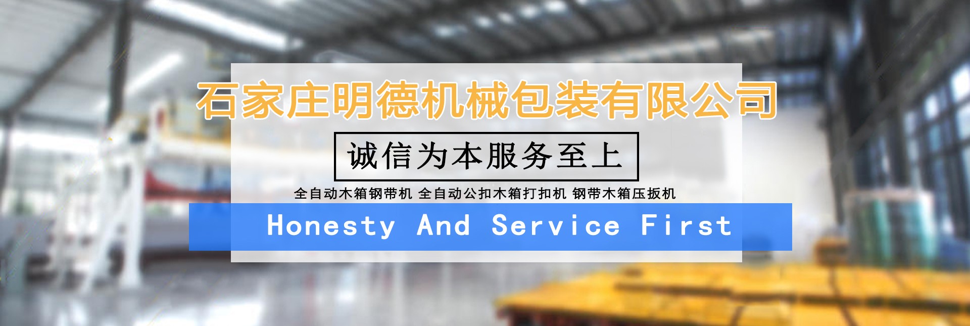 石家莊明德包裝機械有限公司,是國內(nèi)專業(yè)生產(chǎn)木箱雙條鋼帶機、美式托盤打釘機械、托盤刨槽機、倒角機、木包裝箱、木托盤的生產(chǎn)廠家,目前擁有廠房3000多平方米,自動化生產(chǎn)設(shè)備數(shù)十套。 公司下轄包裝機械事業(yè)部,主要生產(chǎn)新型全自動木箱鋼帶機、全自動(半自動)木箱鎖扣機、折疊鋼帶箱機械、鋼帶箱壓板機、美式托盤自動打釘機、托盤刨槽機、倒角機等相關(guān)鋼帶木箱機械、木工機械、配套產(chǎn)品,設(shè)備主體部分由高品質(zhì)機械和高精度模具組成,液壓系統(tǒng)、伺服系統(tǒng)和低壓配電單元的主要元器件,均選用西門子、施耐德等國際和國內(nèi)產(chǎn)品,大大提升了產(chǎn)品質(zhì)量,設(shè)備長時間運行穩(wěn)定可靠,獲得了用戶的一致好評。 公司下轄包裝制品事業(yè)部,主要生產(chǎn)各種實木木箱、膠合板鋼帶木箱和實木熏蒸托盤、歐標(biāo)托盤、美標(biāo)托盤、亞標(biāo)托盤及相關(guān)配套產(chǎn)品,木箱和托盤均選用優(yōu)質(zhì)九厘板材和俄羅斯原木作為原材料,從生產(chǎn)制造、成品組裝、出廠質(zhì)檢到送貨上門,售后服務(wù)等,做到一條龍服務(wù),始終堅持“把質(zhì)量做到更好,把成本降到更低,把實惠讓給客戶“的經(jīng)營原則。